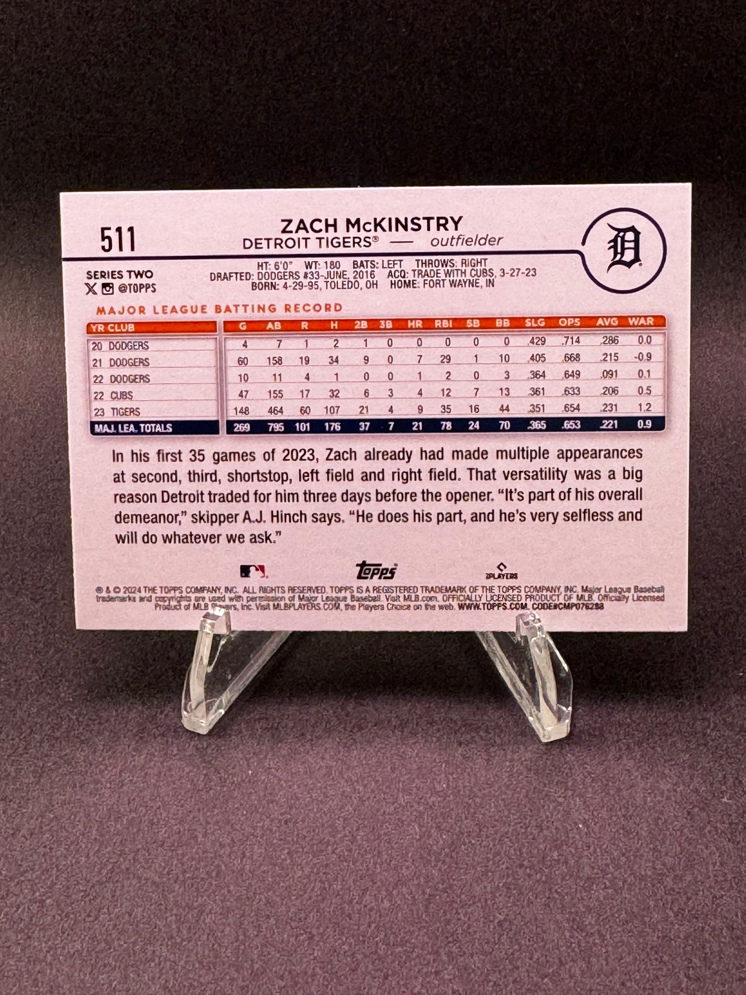 2024 Topps Series Two #511 Team Color Logo Border Zach McKinstry Detroit Tigers